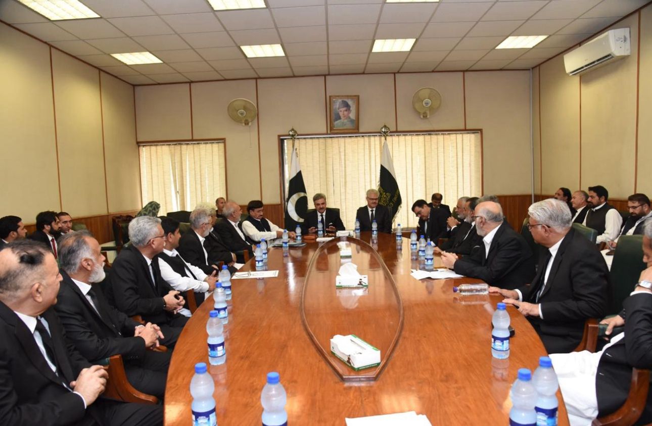 Peshawar, August 1, 2025 – The Hon’ble Chief Justice of Pakistan, accompanied by the Hon’ble Chief Justice of the Peshawar High Court, Registrar Supreme Court, and Registrar Peshawar High Court, met with a delegation of lawyers from Khyber Pakhtunkhwa at the Supreme Court Branch Registry, Peshawar. The delegation included representatives of the Khyber Pakhtunkhwa Bar Council, High Court Bar Association, and 35 District Bar Associations across the province.
